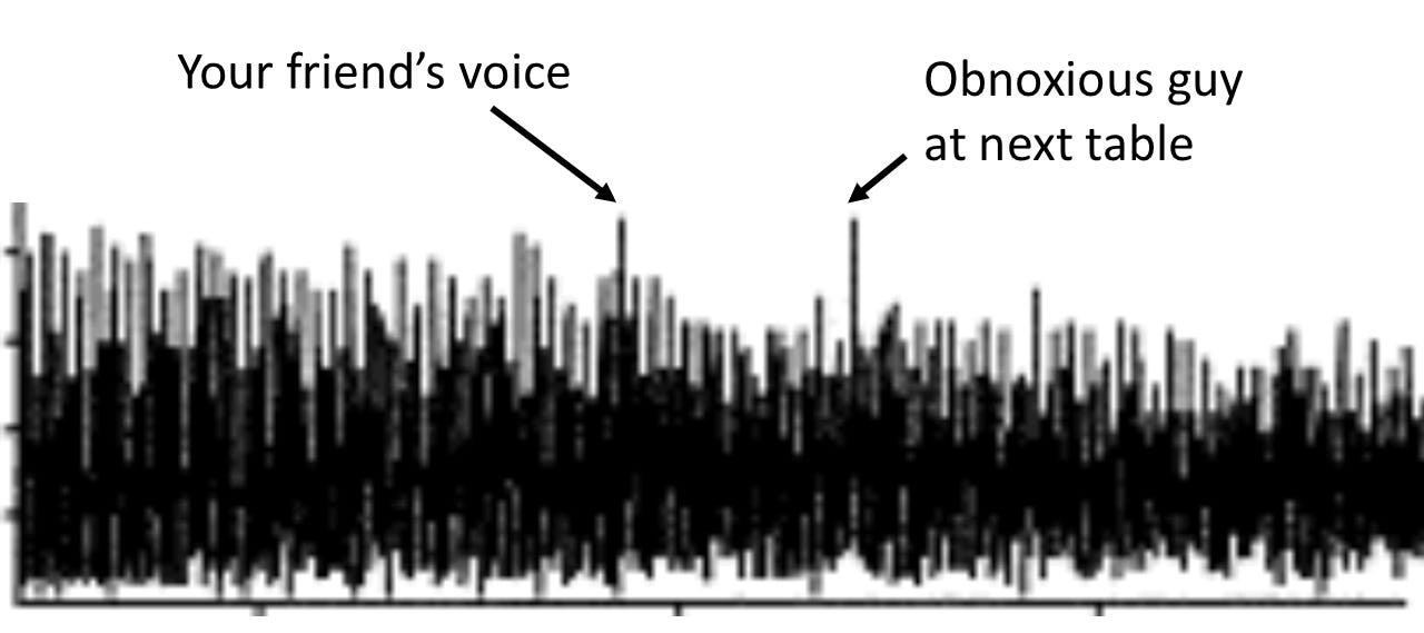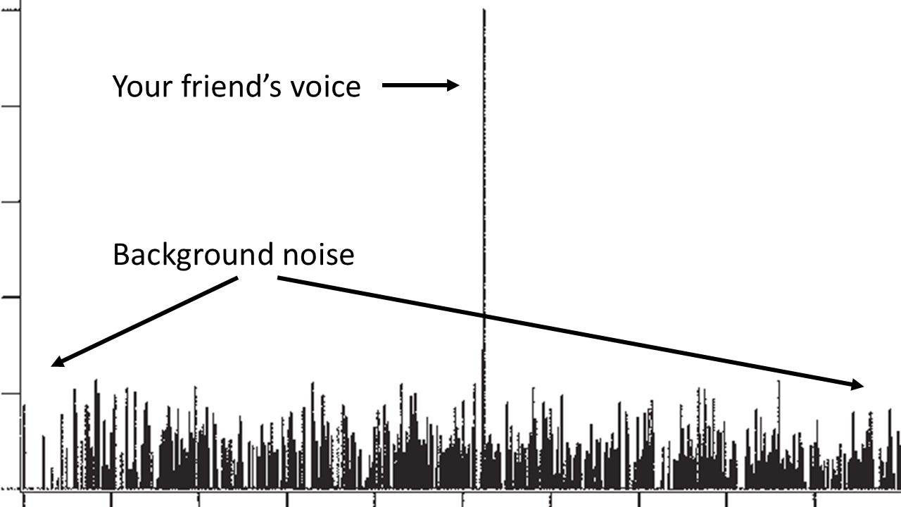 If you go to the restaurant when it’s very busy, you have to strain to hear your friend’s voice, and the background noise is really loud. The picture of your conversation might look like this: