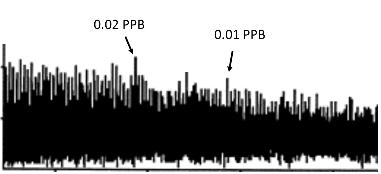 What does this have to do with your PSA? A level of 0.01 PPB is so small that it’s pretty close to instrument noise, and so is 0.02 PPB. These two signals can be hard to tell from noise: